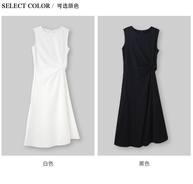 标准版型围裹式纽结连衣裙白色棉质修身裙25夏新品